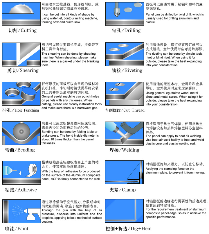 用于大樓外墻、帷幕墻板、舊樓改造翻新、室內(nèi)墻壁及天花板裝修、廣告招牌、展示臺架、凈化防塵工程